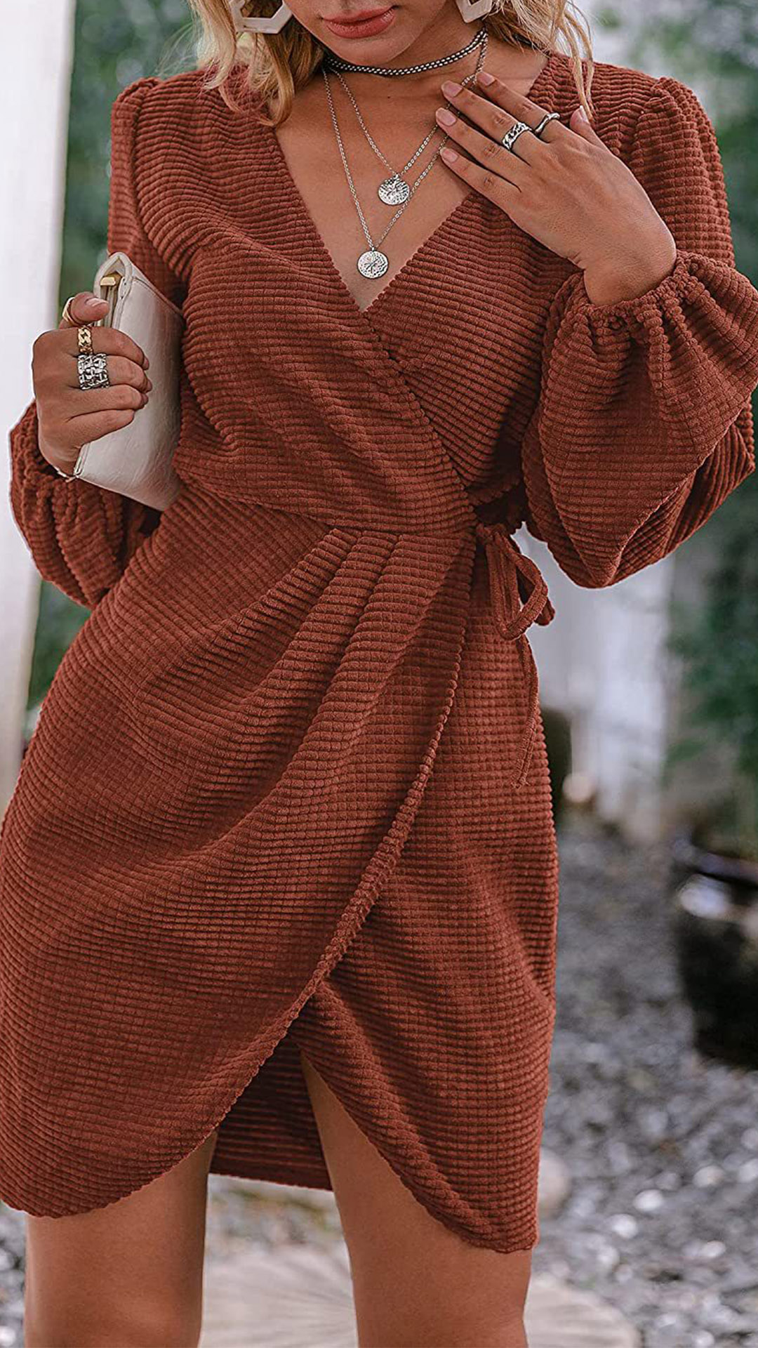 This dress comes with a solid color,which makes it look simple yet generous,while the v-neck and irregular hem design will lend you some flirty and sassy vibes. Moreover,its soft and breathable fabric can give you a comfortable day.
