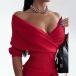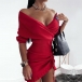 Sexy V-neck Irregular Hem Solid Color Slim Fit Knit Dress