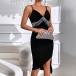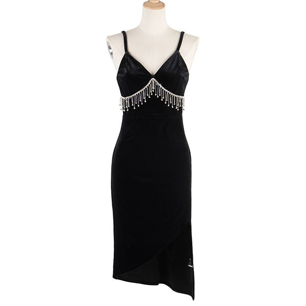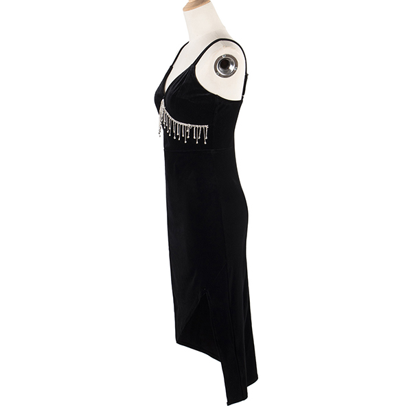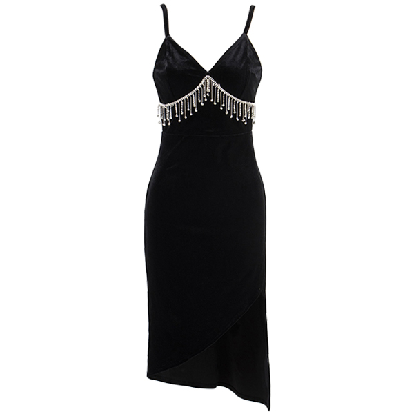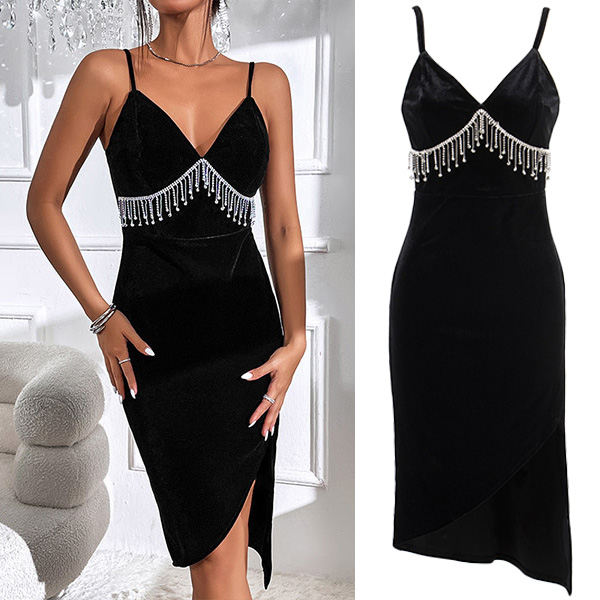 Are you looking for a hot and sexy dress for your next party? Look no further than this Sexy Bodycon Slip Dress! The v-neck neckline with tassel is both stylish and sexy, and the irregular hemline is perfect for showing off your legs. Whether you're hitting the club or just having a night out with the girls, this is the perfect dress!