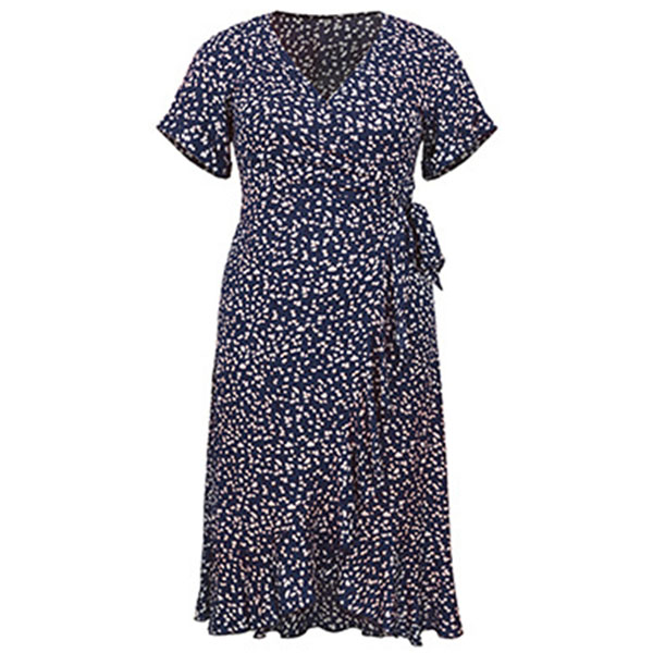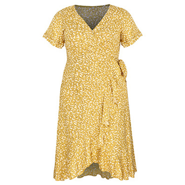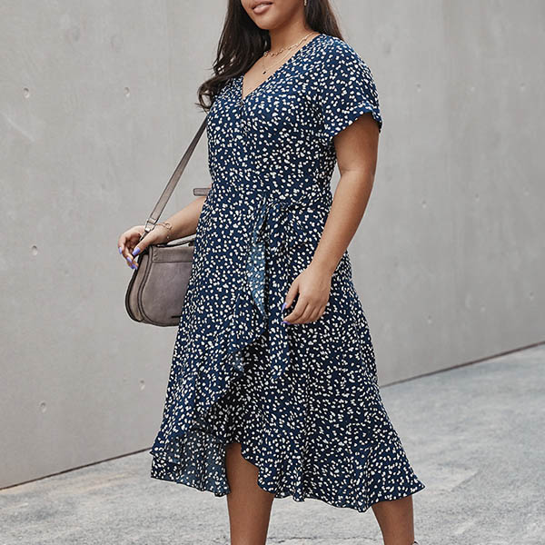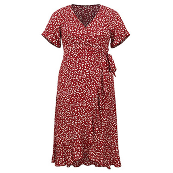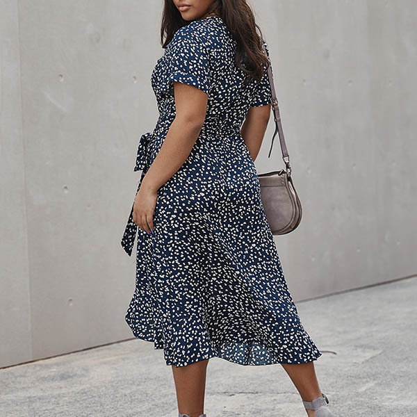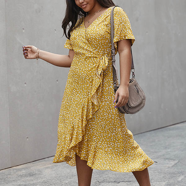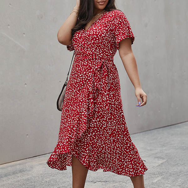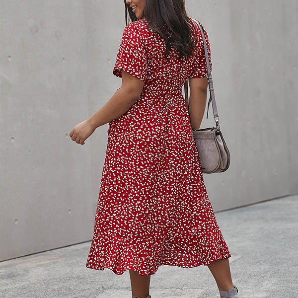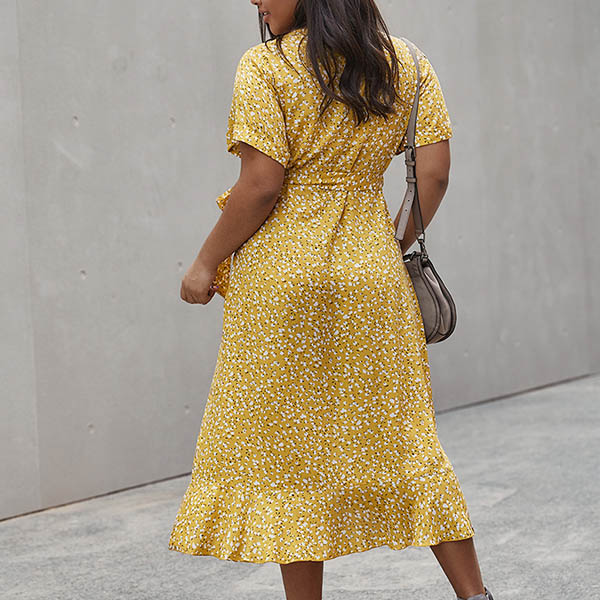Sexy V-neck Irregular Ruffle Hem Short Sleeve Printed Dress