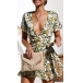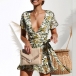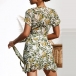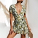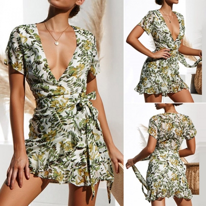 Sexy V-neck Irregular Ruffle Hem Short Sleeve Slim Fit Printed Dress