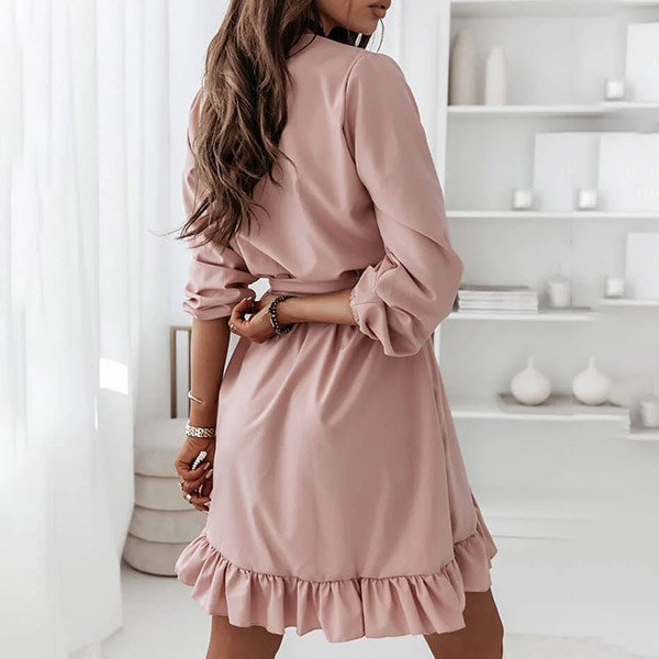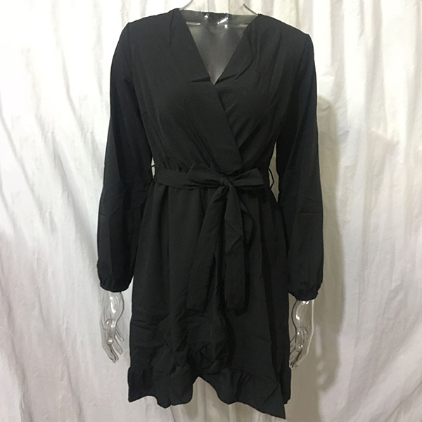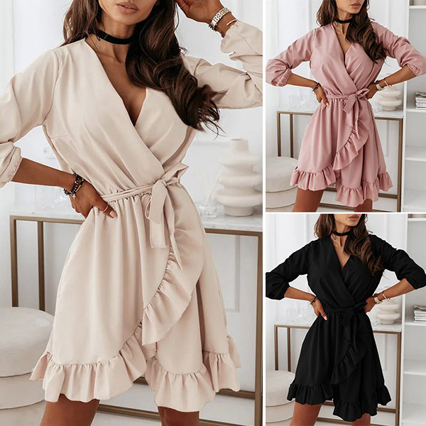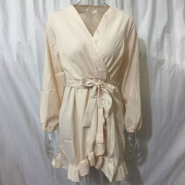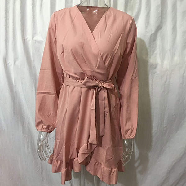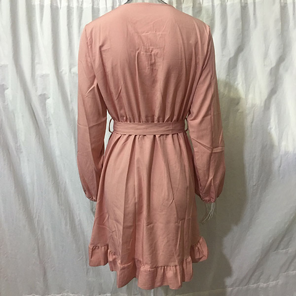 This long-sleeved dress is designed with v-neck and a ruffle hem,which can lend you a dash of sweet yet feminine appeal. Solid color style,crafted from soft and breathable fabric,this dress also can give you a comfortable day. Comes with a waist strap design,which can better showcase your waistline. Attracted? Then buy one!