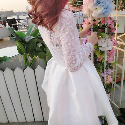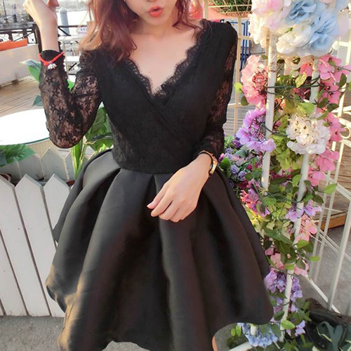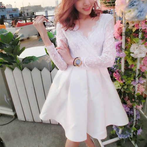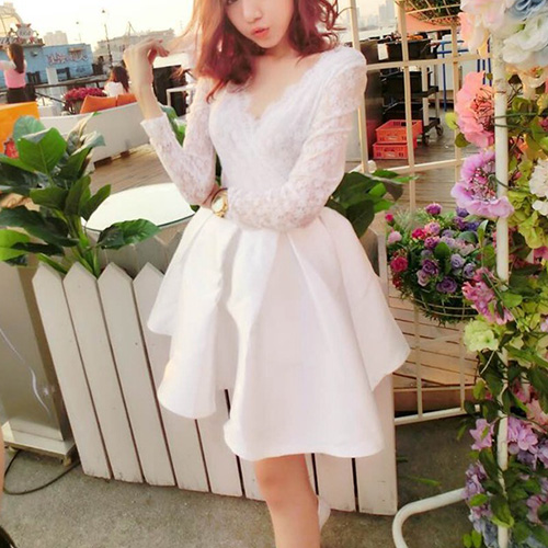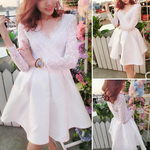You must be the most sweet,elegant and sexy princess in this dress. It features sexy v-neck design,with lace spliced design,