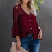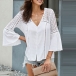 Sexy V-neck Lace Spliced Trumpet Sleeve Top