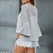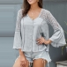 Start your wonderful day from this stylish top. Its soft fabric and loose silhouette design can give you a comfortable day,while the v-neck and lace spliced trumpet sleeve design will boost your feminine appeal. Simply need to match with your favourite bottom,then you can have a fashionable daily look!