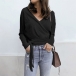 Features a solid color,the v-neck and lace-up hem design are the highlights,which make