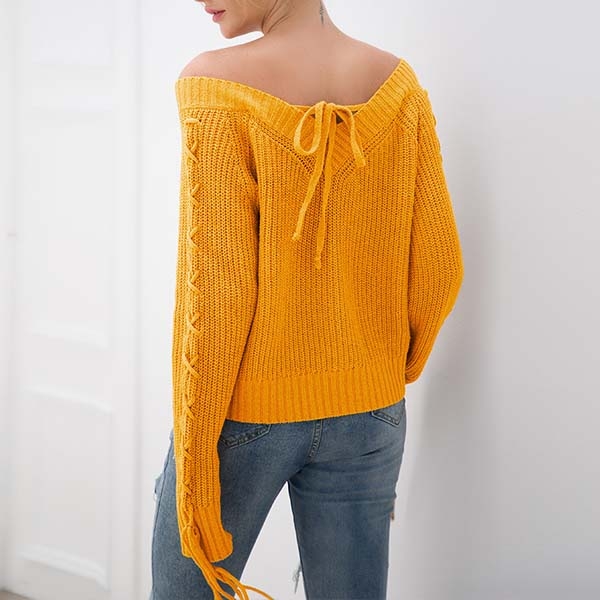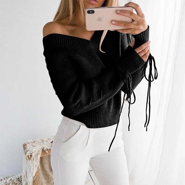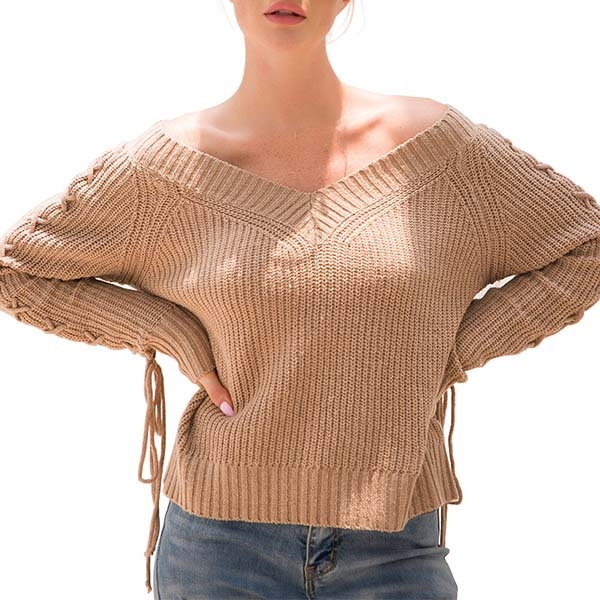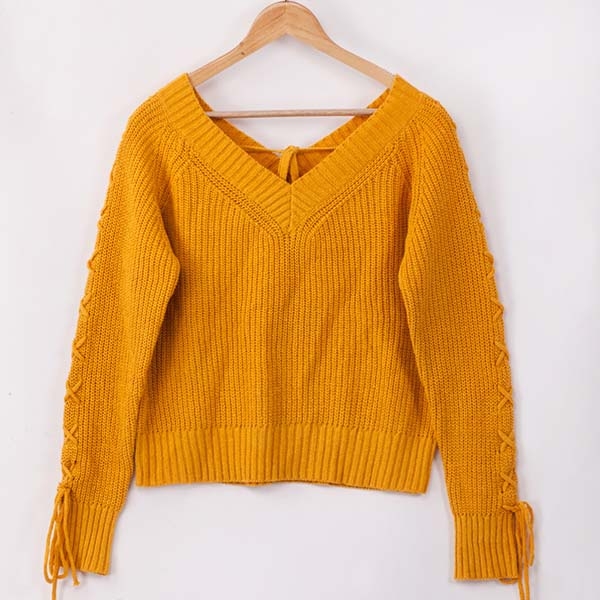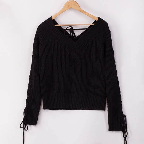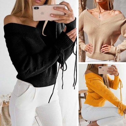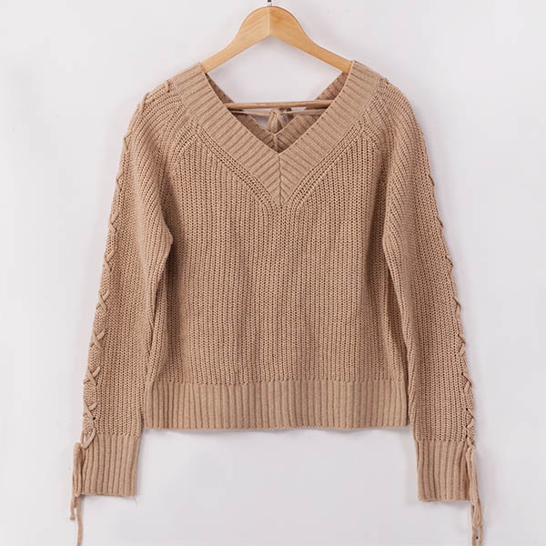 Solid color style,the v-neck and lace-up design at the sleeve part make this piece look