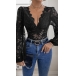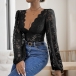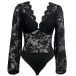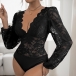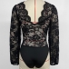 Sexy V-neck Lantern Long Sleeve Semi-through Lace Bodysuit