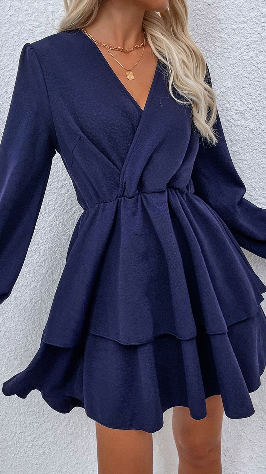 From your daytime out to night dating,this versatile dress can give you a perfect transition. It is finished with long sleeve,v-neck and dual-layer hem,this dress is a good weapon to express your sweet,sassy yet flirty side. What you need to do is just slipping into this dress and matching with your favourite heels!