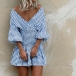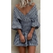 Sexy V-neck Lantern Sleeve High Waist Plaid Printed Dress