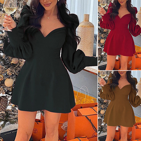 Wanna be a sassy yet flirty princess dress? Then look no further than this piece. The v-neck design can exude your feminine side,while the puff sleeve design will add some extra charm. Solid color style,with high waist and a clean,fit silhouette,this dress also can showcase your slender figure.