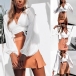 When you wanna flaunt off your slender waist,then you can make your eyes focused on this crop top. Solid color style,the lantern sleeve and v-neck design make this piece look so sexy and flirty. We suggest you matching with your high waist bottoms to start your wonderful day.
