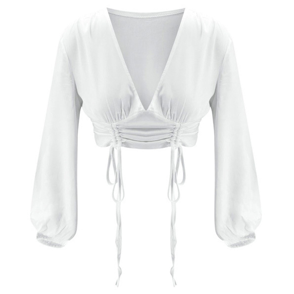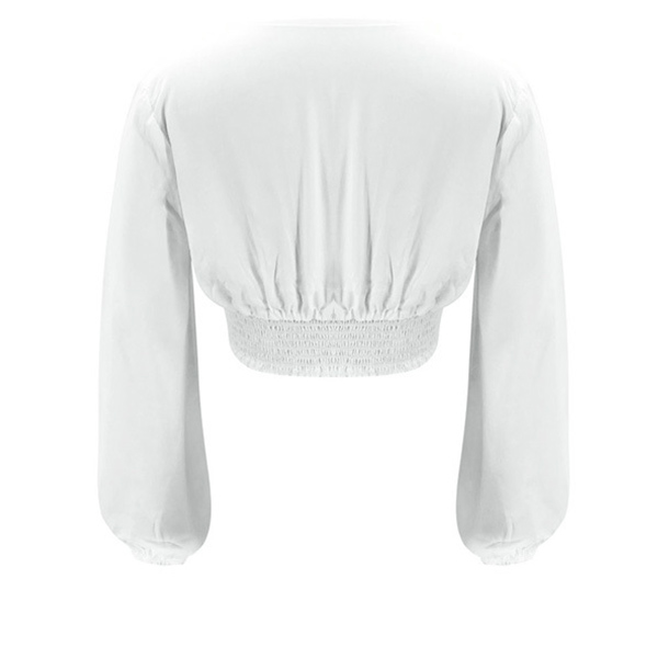 Sexy V-neck Lantern Sleeve Solid Color Crop Top