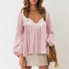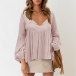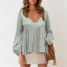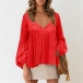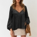 Sexy V-neck Lantern Sleeve Solid Color Loose T-shirt