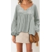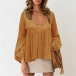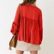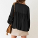 When you wanna try a different style t-shirt,you can make your eyes focused on this piece. Solid color style,the lantern sleeve,v-neck design make this piece full of style and charm,while its soft fabric and loose silhouette design can ensure you a comfortable day. We suggest you matching with a tight pants to start your wonderful day.