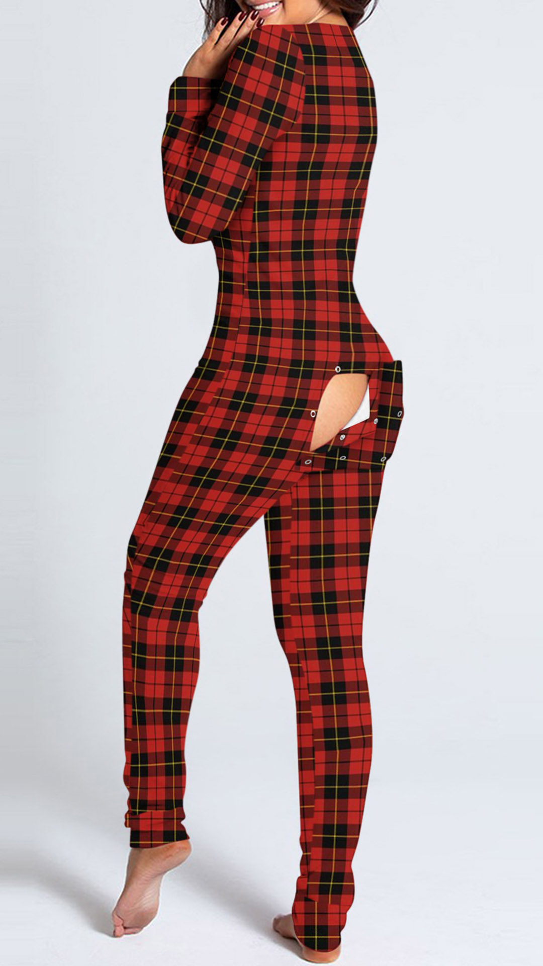 For your leisure home time,you can trust in this jumpsuit to give you an utmost comfort with its soft and breathable fabric. Its chic and popular plaid printed details can help you catch more eyes. The butt flap design makes it more convenient,while the deep v-neck design can exude your sexy and flirty side. Finished with long sleeve and a fit silhouette,this piece makes it suitable for indoor and outdoor wearing.