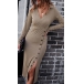 Sexy V-neck Long Sleeve Button Slit Hem Solid Color Slim Fit Dress