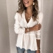 For a stylish yet flirty working look,you can just slip into this wonderful top. The dots printed details make this piece look so eye-catching and charming,while the deep v-neck design can enhance your feminine appeal. You can simply matching with a tight pants to start your wonderful day.