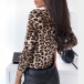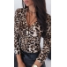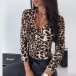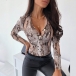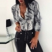 Sexy V-neck Long Sleeve Front-button Serpentine Printed T-shirt
