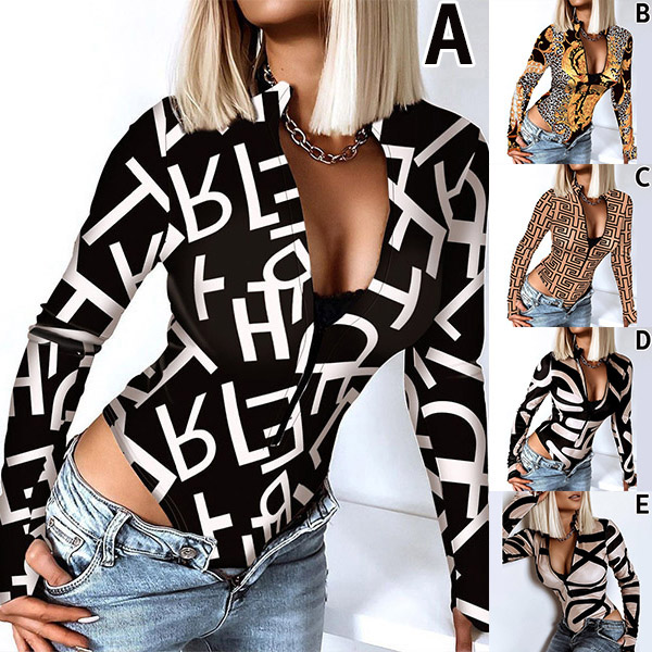 You can easily flaunt off your perfect and seductive curve with the help of this bodysuit. Its chic printed details can help you catch more eyes. Finished with long sleeve,v-neck,front-zipper and soft,breathable fabric,this piece can keep the comfy while it maintains your appeal. Perfect fit for matching with your high waist bottoms.
