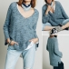 A loose-fitting silhouette, with v-neck, long sleeve and high-low hemline design, this sweater