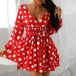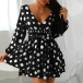 Sexy V-neck Long Sleeve High Waist Dots Printed Dress
