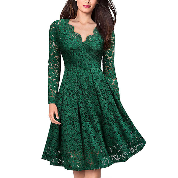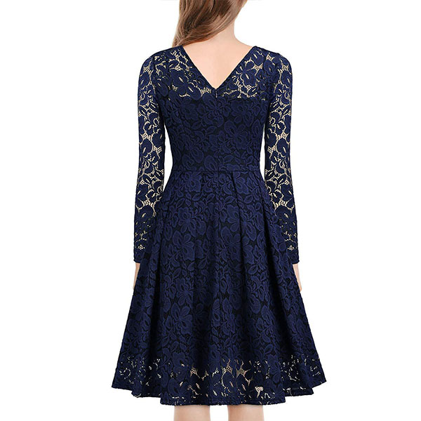 Exude the allure of an elegant lady when you slip into this long sleeve lace dress. The v-neck design can exude your sexy and feminine appeal,while the high waist design can showcase your slender figure. Dress it up with your sexy heels and elegant clutch,you can look elegant and stunning enough!