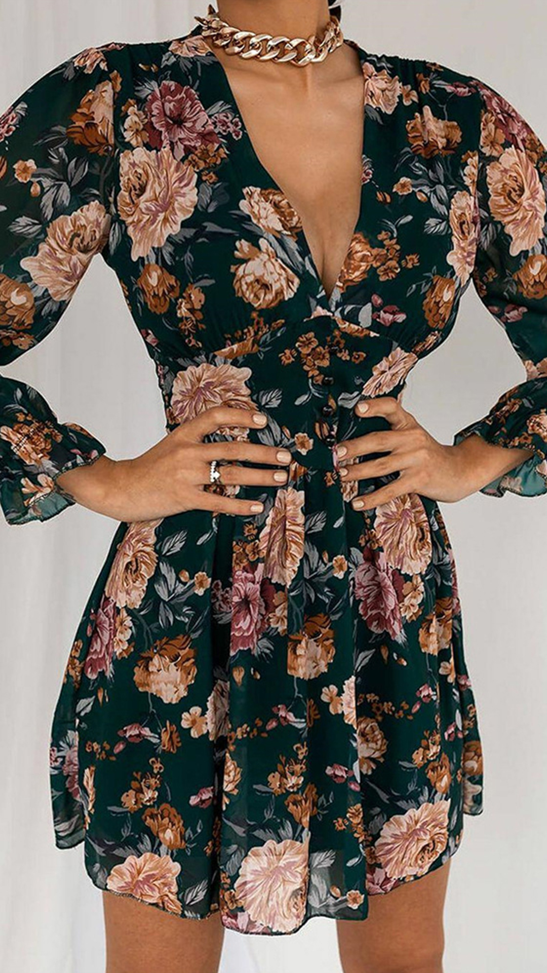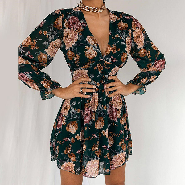 This dress is designed with eye-catching printed details,which can help you catch more eyes. And the v-neck design will enhance your feminine appeal. Finished with long sleeve and high waist design,this dress also can help showcase your slender figure. No matter for your daytime out or night dating,this dress can be your wise choice.