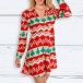Sexy V-neck Long Sleeve High Waist Printed Dress