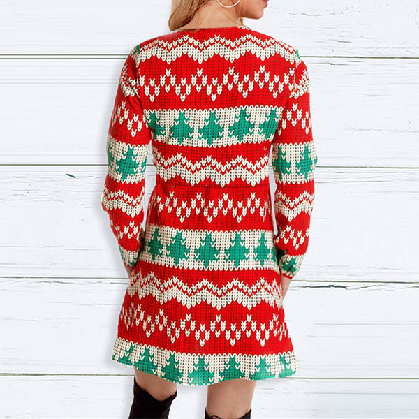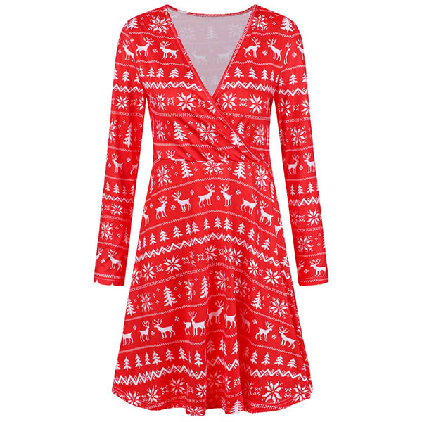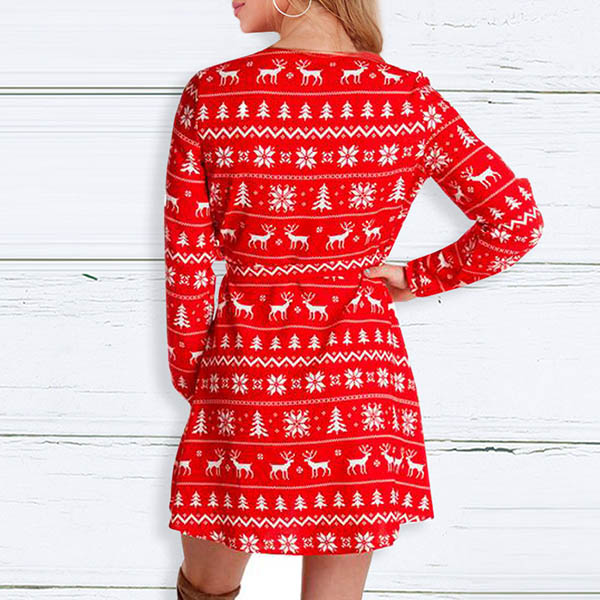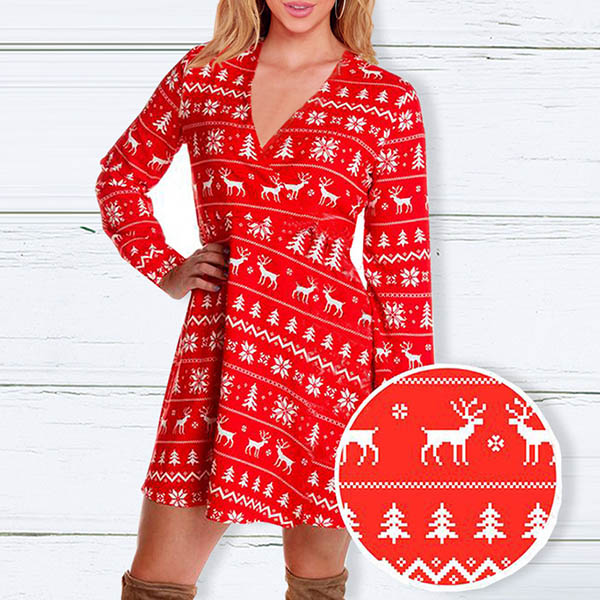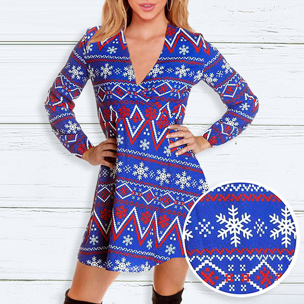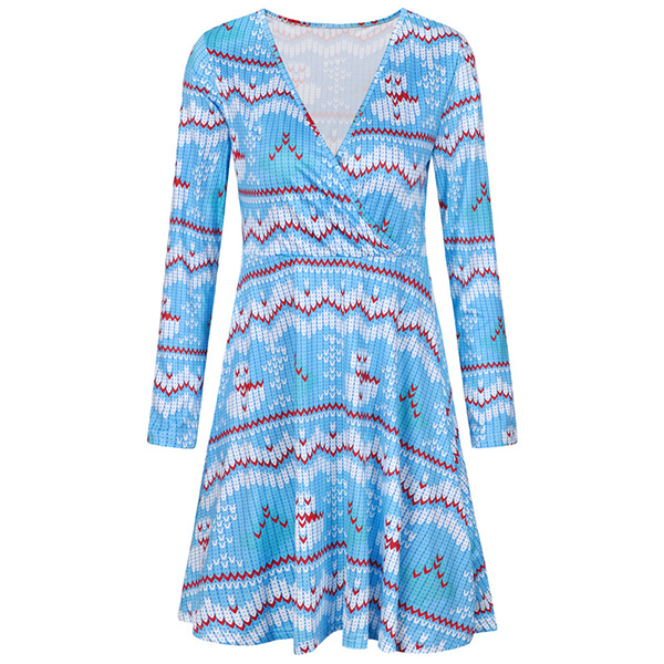 From your daytime out to night dating,this long sleeve dress can give you a perfect transition. Its chic and eye-catching printed details can help you gain more eyes,while the v-neck design will exude your flirty sense. You can just dress it up with your sexy heels for a beautiful look.