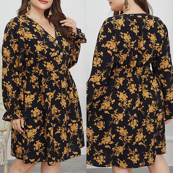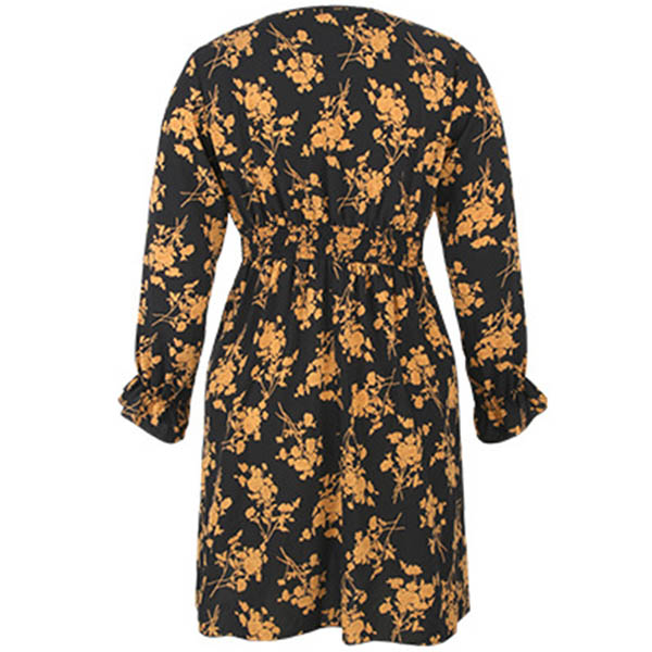 Captivate hearts and minds with this dress. Its vibrant floral print details can help you win more yes,while the v-neck design will enhance your feminine appeal. Finished with long sleeve and high waist design,this dress makes it easy for any girl to look effortlessly charming and beautiful.