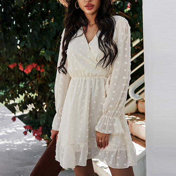 Sexy V-neck Long Sleeve High Waist Ruffle Hem Dress