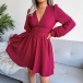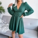 Such a versatile dress is worth for your attention. Solid color tone design makes it look simple yet generous. Finished with long sleeve,v-neck and high waist design,this dress not only can showcase your slender figure,but also can enhance your feminine appeal. It is perfect fit for different occasions such as night dating,weekend out,parties and so on.