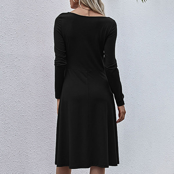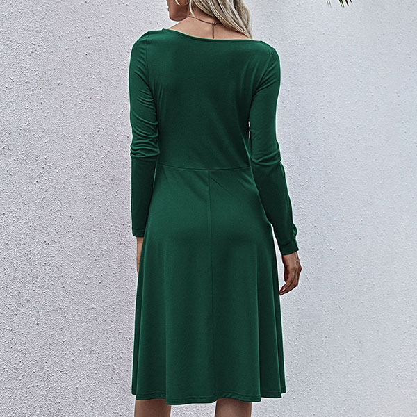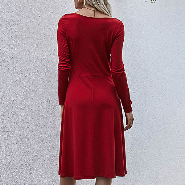 Sexy V-neck Long Sleeve High Waist Solid Color Dress