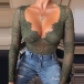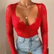Sexy V-neck Long Sleeve Hollow Out Lace Bodysuit