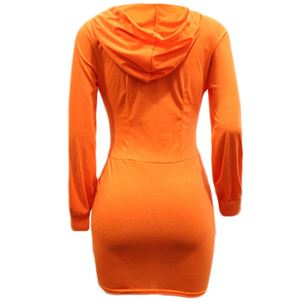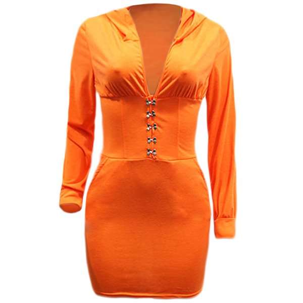 Sexy V-neck Long Sleeve Hooded Solid Color Slim Fit Dress