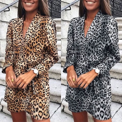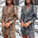 Sexy V-neck Long Sleeve Irregular Hem Leopard Printed Dress