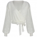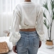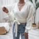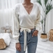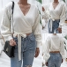 Sexy V-neck Long Sleeve Lace-up Hem Solid Color Knit Top