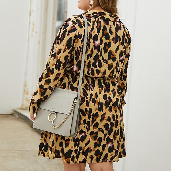 Sexy V-neck Long Sleeve Leopard Printed Plus-size Dress