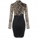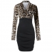 Sexy V-neck Long Sleeve Leopard Spliced Slim Fit Dress
