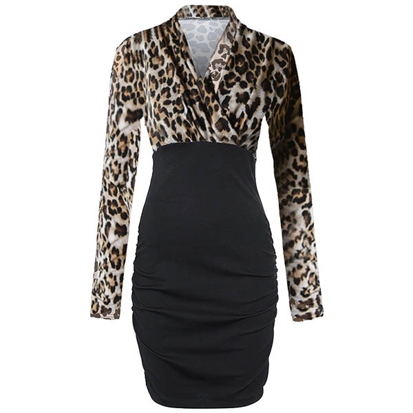 You can easily make the maximum impact with minimal effort with the help of this dress. The deep v-neck and leopard spliced details make this piece look so sexy and eye-catching,while the fit silhouette design can portray your slender figure. Dress it up with your sexy heels and rouged lips,you can look beautiful enough!