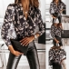 Sexy V-neck Long Sleeve Printed T-shirt