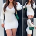Sexy V-neck Long Sleeve Ribber Bodycon Dress