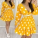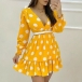 Sexy V-neck Long Sleeve Ruffle Hem Dots Printed Dress