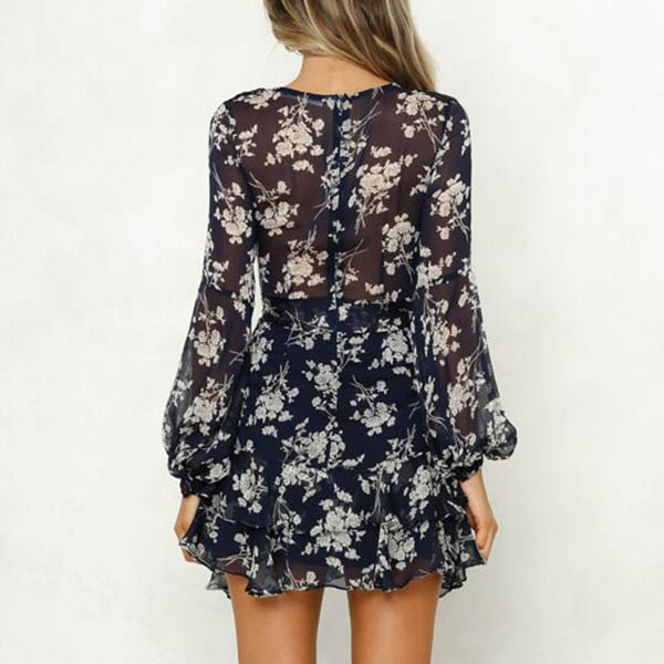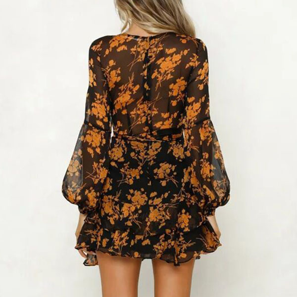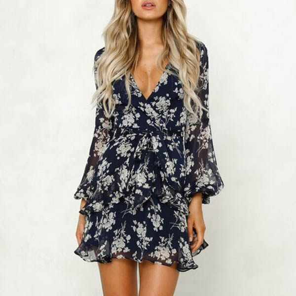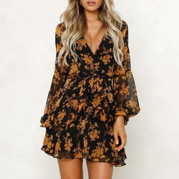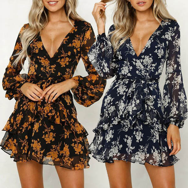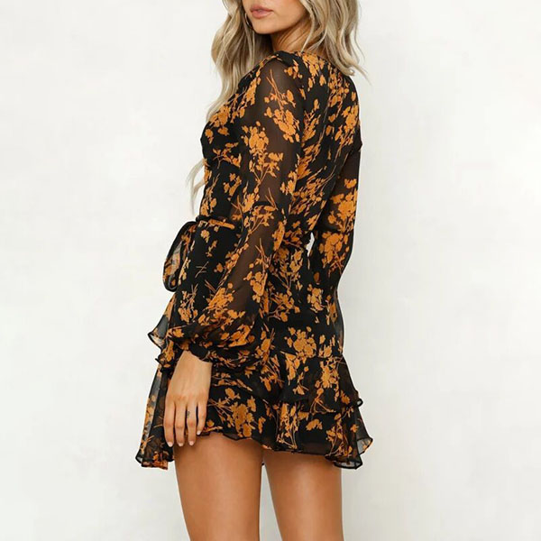 You can express your sexy and charming side through this beautiful dress. Features vibrant floral print details,the deep v-neck and ruffle hem design will make you look more alluring and charming. No matter for your daytime gatherings or night dating,you can trust in this dress to draw more attention.