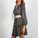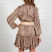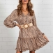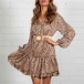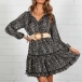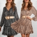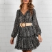 Sexy V-neck Long Sleeve Ruffle Hem Printed Dress(Without Belt)