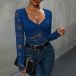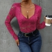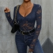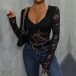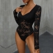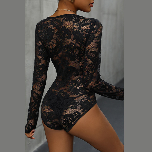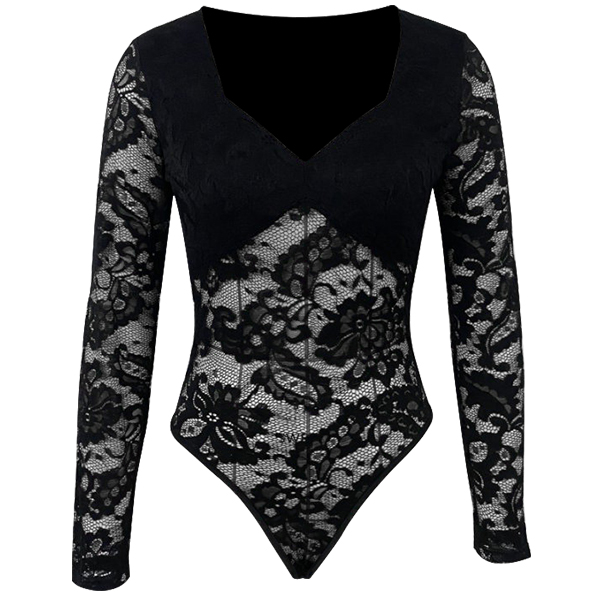This lace bodysuit features a sexy V-neckline, long sleeves, and semi-sheer lace detailing for a seductive and alluring look. Pair with jeans or skirts for a fashion and stylish look.