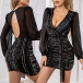Sexy V-neck Long Sleeve Sequin Spliced Slim Fit Dress