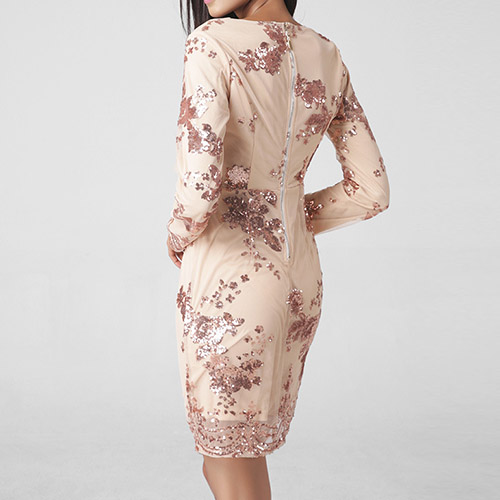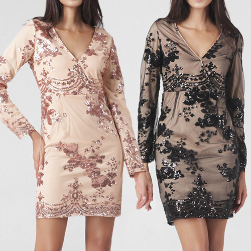 and a fit silhouette,sultry yet elegant. What's more,its sequin spliced details make this piece more eye-catching. Save