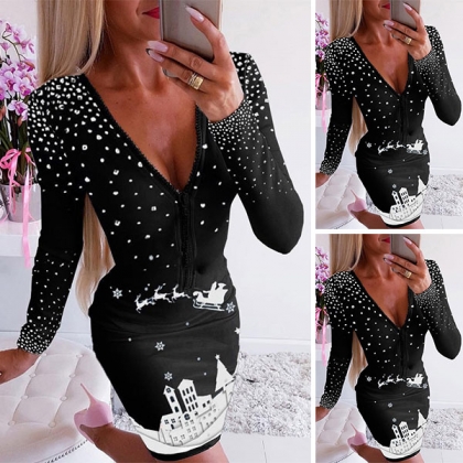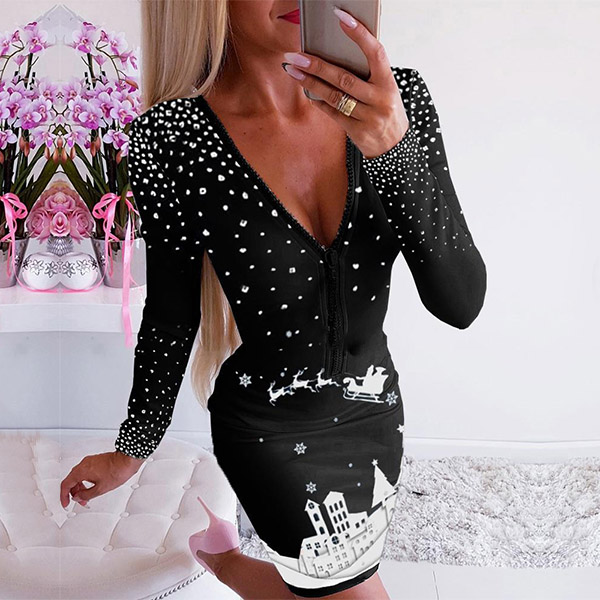 For the coming Christmas Day,you can just slip into this dress for a more beautiful look. It is finished with long sleeve and a fit silhouette,this dress can portray your perfect figure. Moreover,the deep v-neck design can help enhance your feminine appeal. You can dress it up with your sexy heels to gain more eyes.